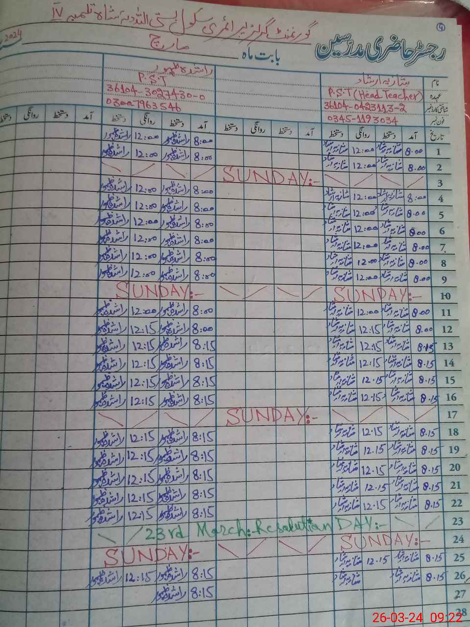 | Name: SH**** IR**** Designation: (School Headmaster's/Headmistress's) PST/PTC/JV Phone/Cell Number: 03**** |