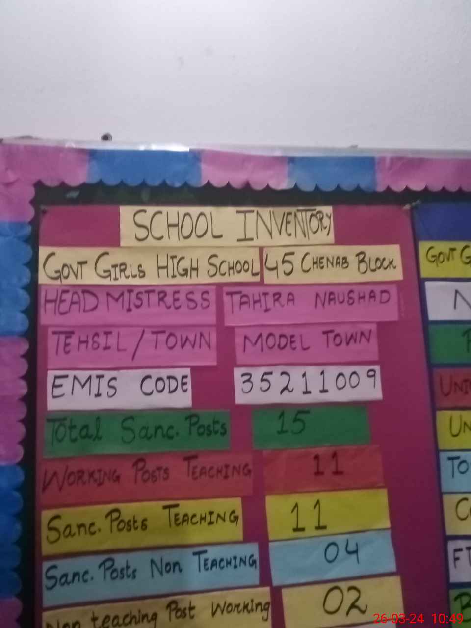 | EMIS Code: 35211009 | Name of School: GGHS 45- CHENAB BLOCK ALLAMA IQBAL TOWN | |||