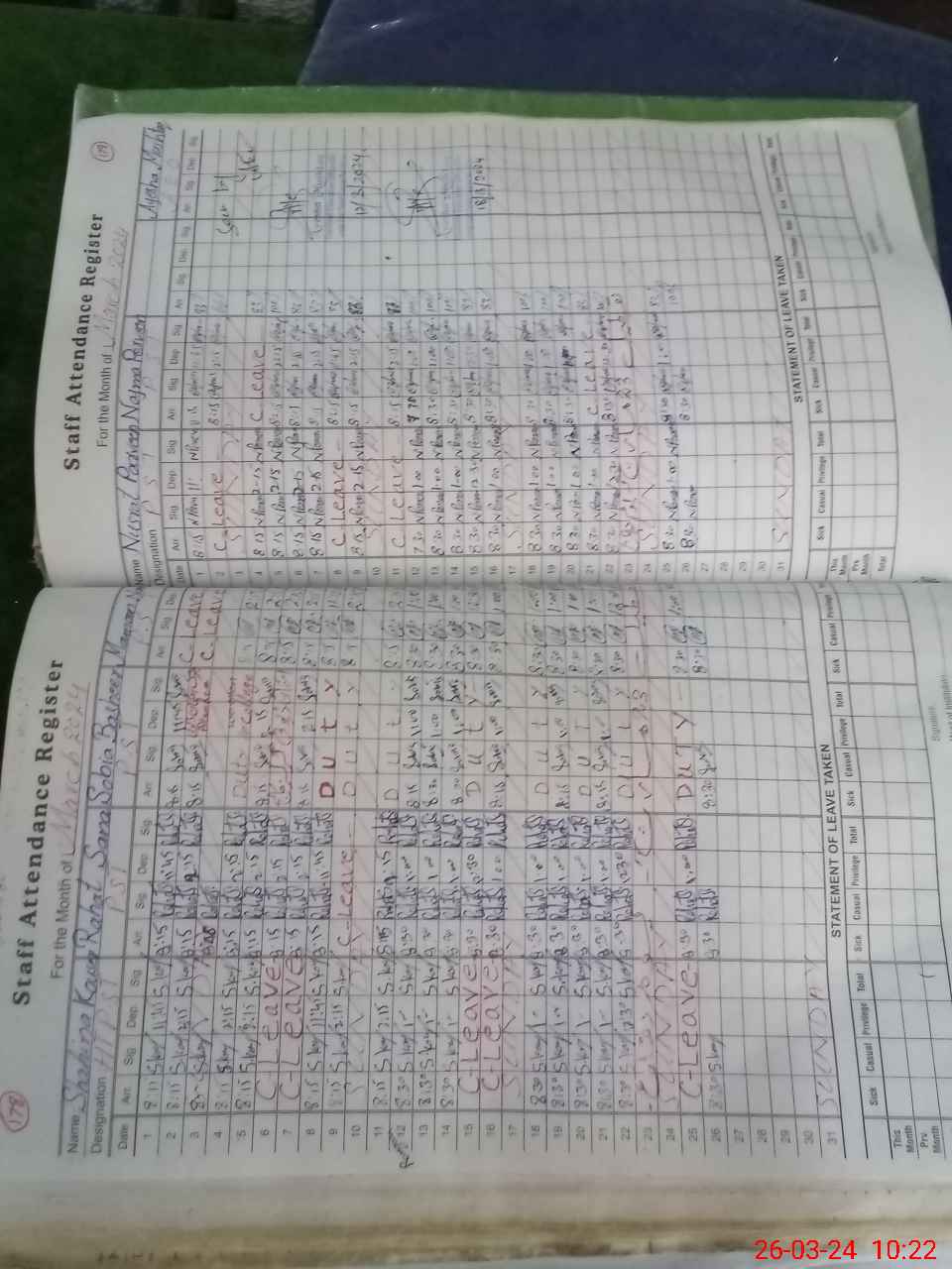 | Leave | Duty | Absent | Maternity | Medical | Ex- Pak |