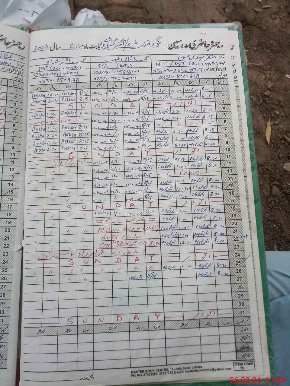| Name: MU**** ME**** HA**** Designation: (School Headmaster's/Headmistress's) PST Phone/Cell Number: 03**** |