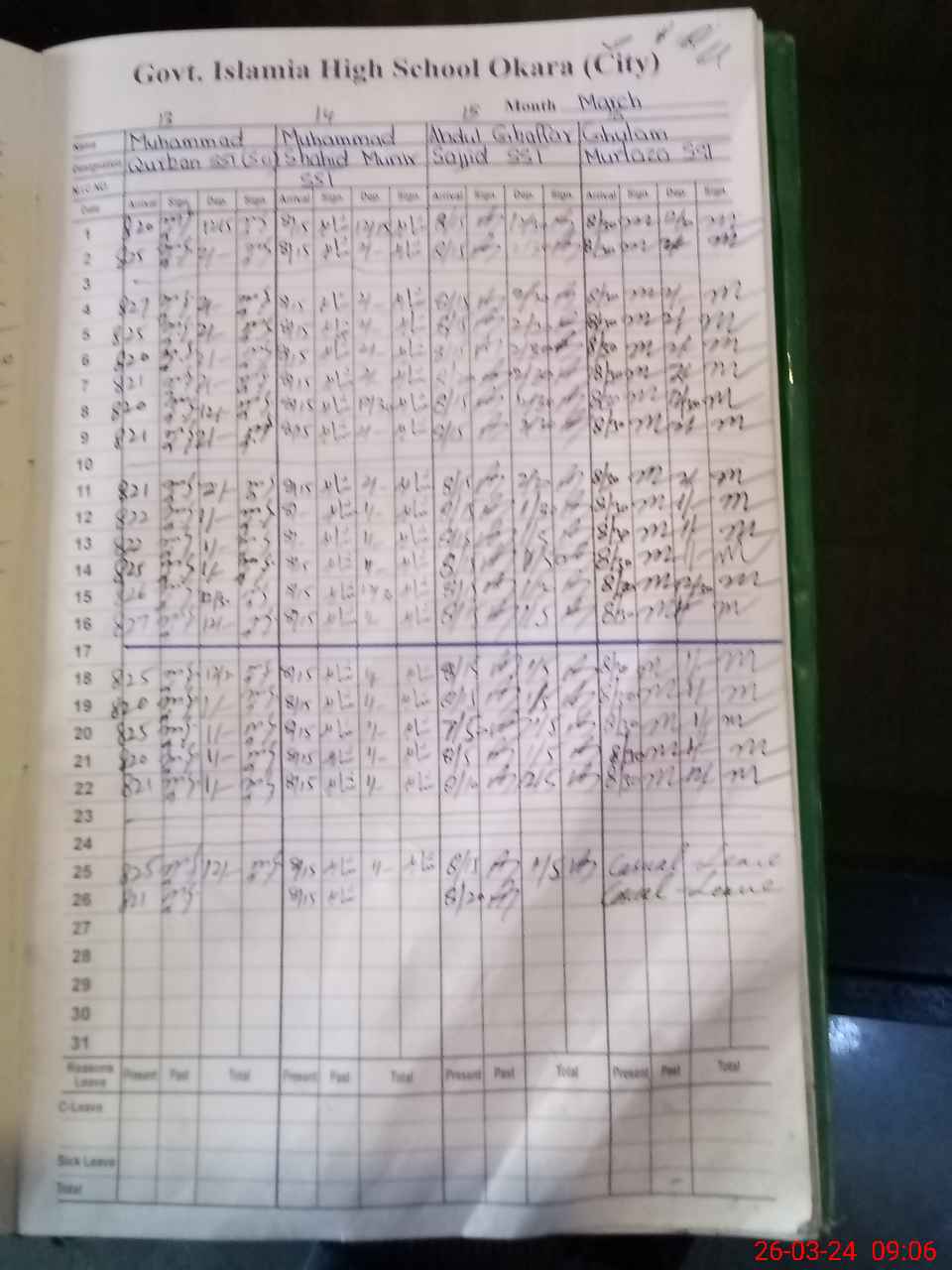 | CNIC | Full Name | Designation | R/C | Absence During Last Calender Month |