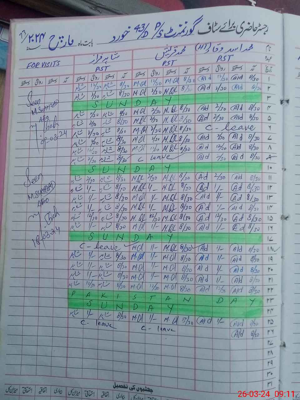 | CNIC | Full Name | Designation | R/C | Absence During Last Calender Month |