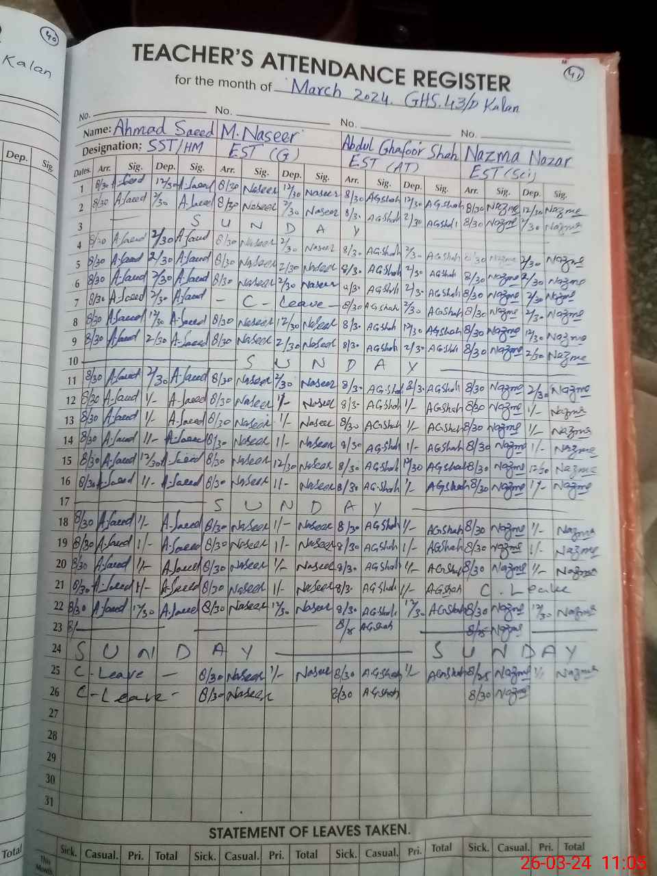 | 35**** | Mu**** Ra**** | EST | Regular | 0 | 0 | 0 | 0 | 0 | 0 | 0 | 0 | 0 | Exam Duty |
