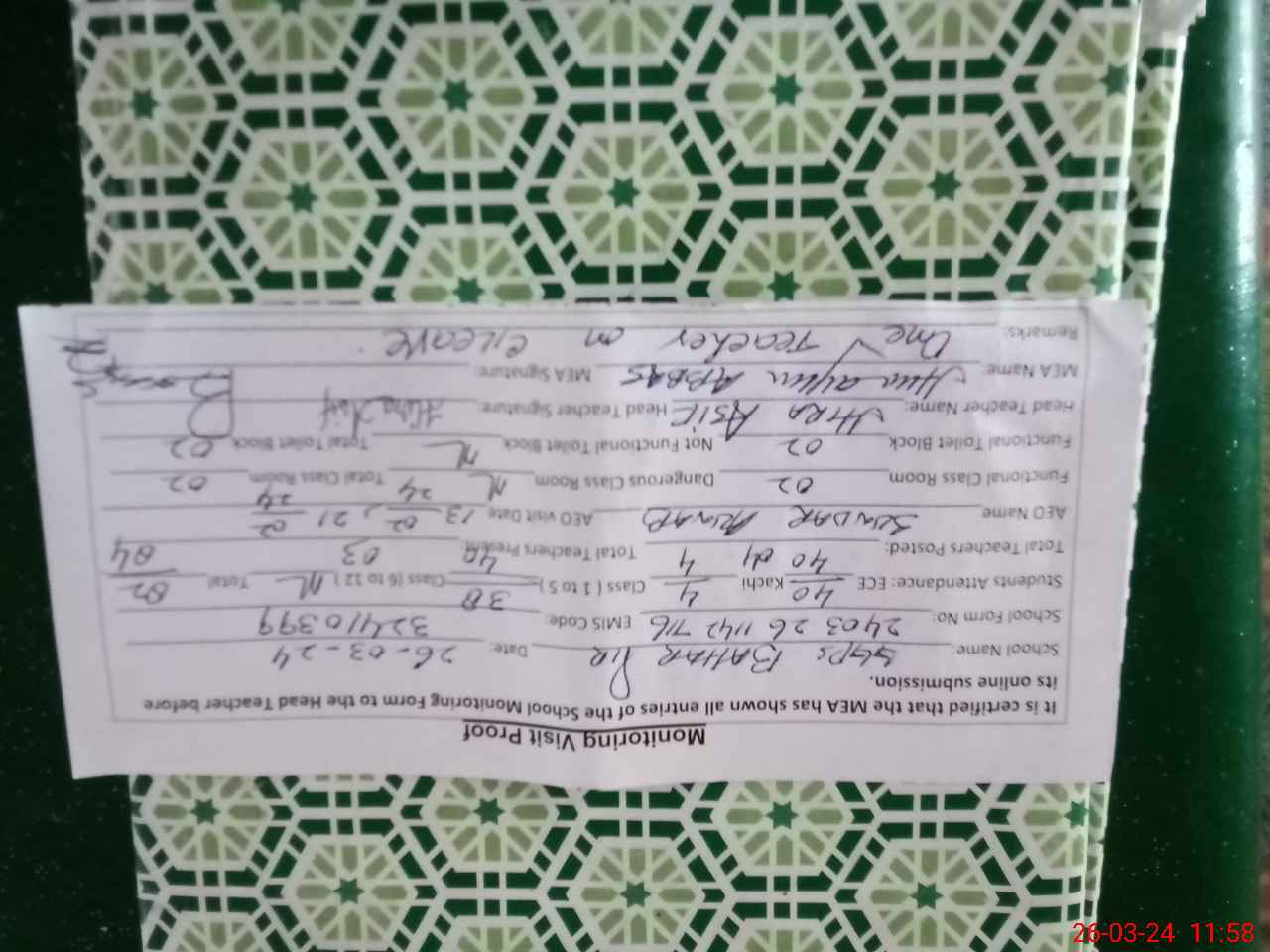 | EMIS Code: 32410399 | Name of School: GGPS BAHAR PIR | |||