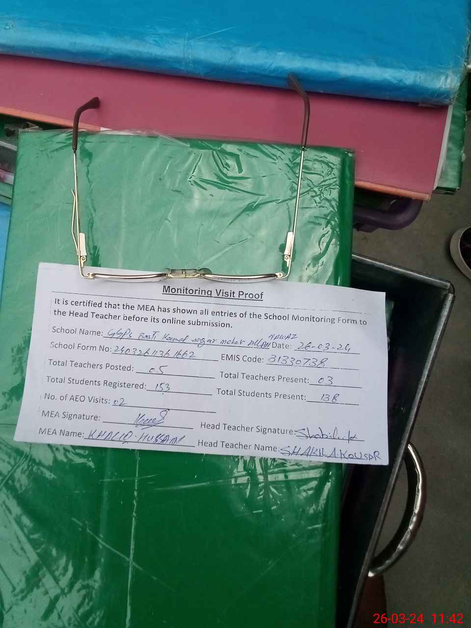| Certified that this School was Inspected by the Undersigned MEA/DMO Today and the Information Stated Above is as Per Record. | |||||
