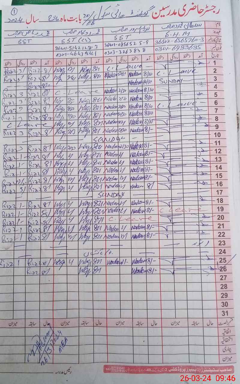 | Name: HA**** M.**** Designation: (School Headmaster's/Headmistress's) SST(G) Phone/Cell Number: 03**** |