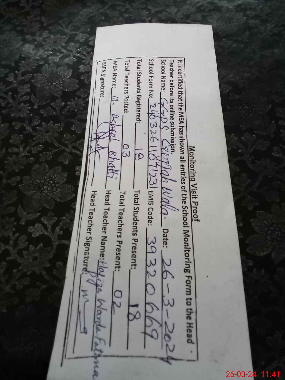 | EMIS Code: 39320669 | Name of School: GGPS GUJJAN WALA | |||