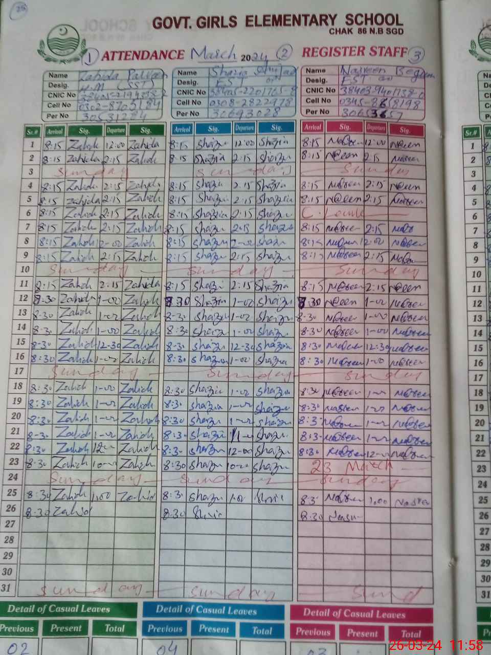 | CNIC | Full Name | Designation | R/C | Absence During Last Calender Month |