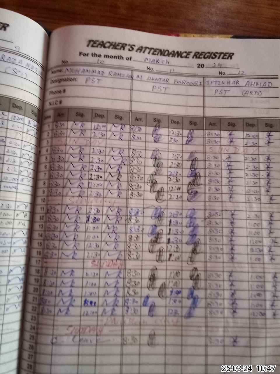 | CNIC | Full Name | Designation | R/C | Absence During Last Calender Month |