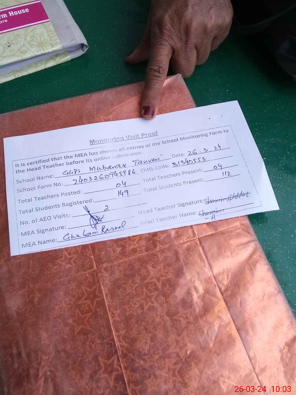 | EMIS Code: 31340553 | Name of School: GGPS MUBARAK TANWERI | |||