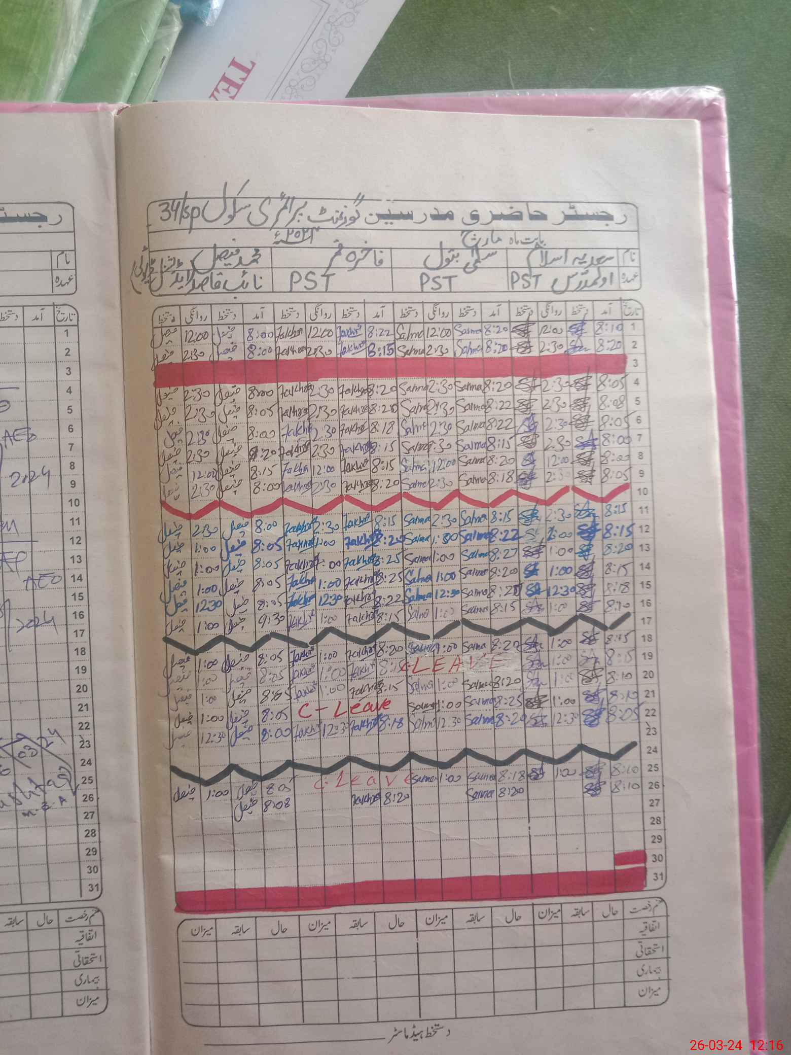 | Leave | Duty | Absent | Maternity | Medical | Ex- Pak |