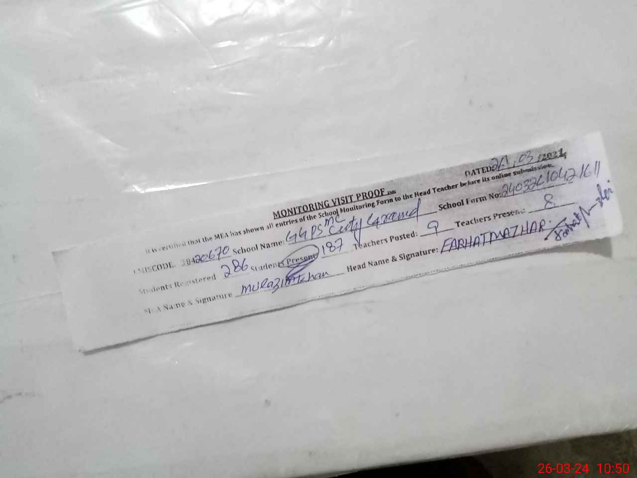 | Attendance Register | Head Teacher | MEA with School | Visit Proof |