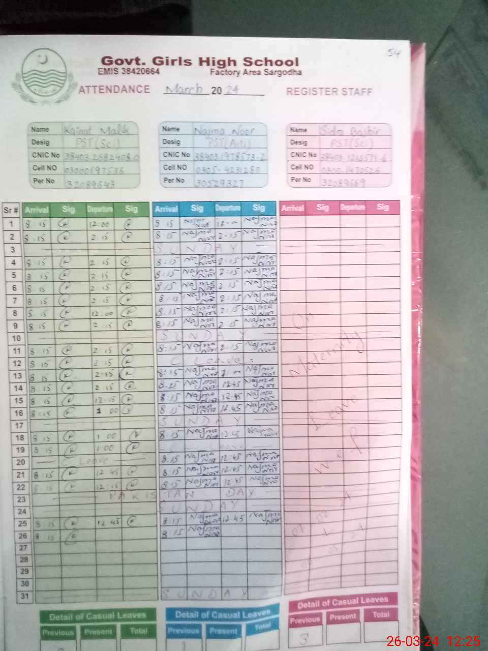 | EMIS Code: 38420664 | Name of School: GGHS FACTORY AREA SARGODHA | |||