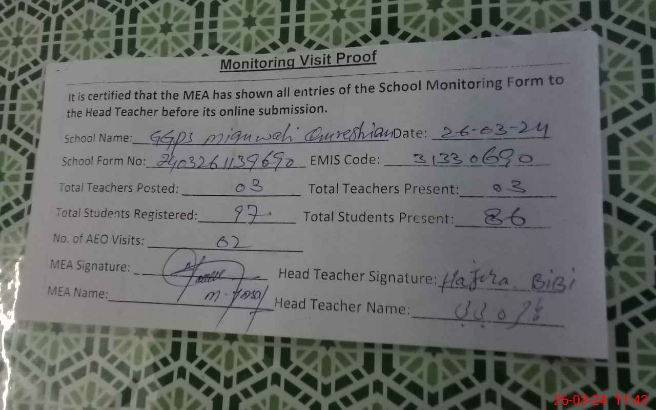 | EMIS Code: 31330690 | Name of School: GGPS MIAN WALI QURESHIAN | |||