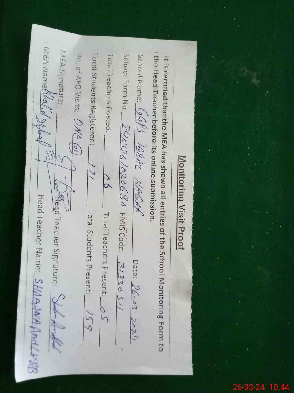 | Certified that this School was Inspected by the Undersigned MEA/DMO Today and the Information Stated Above is as Per Record. | |||||