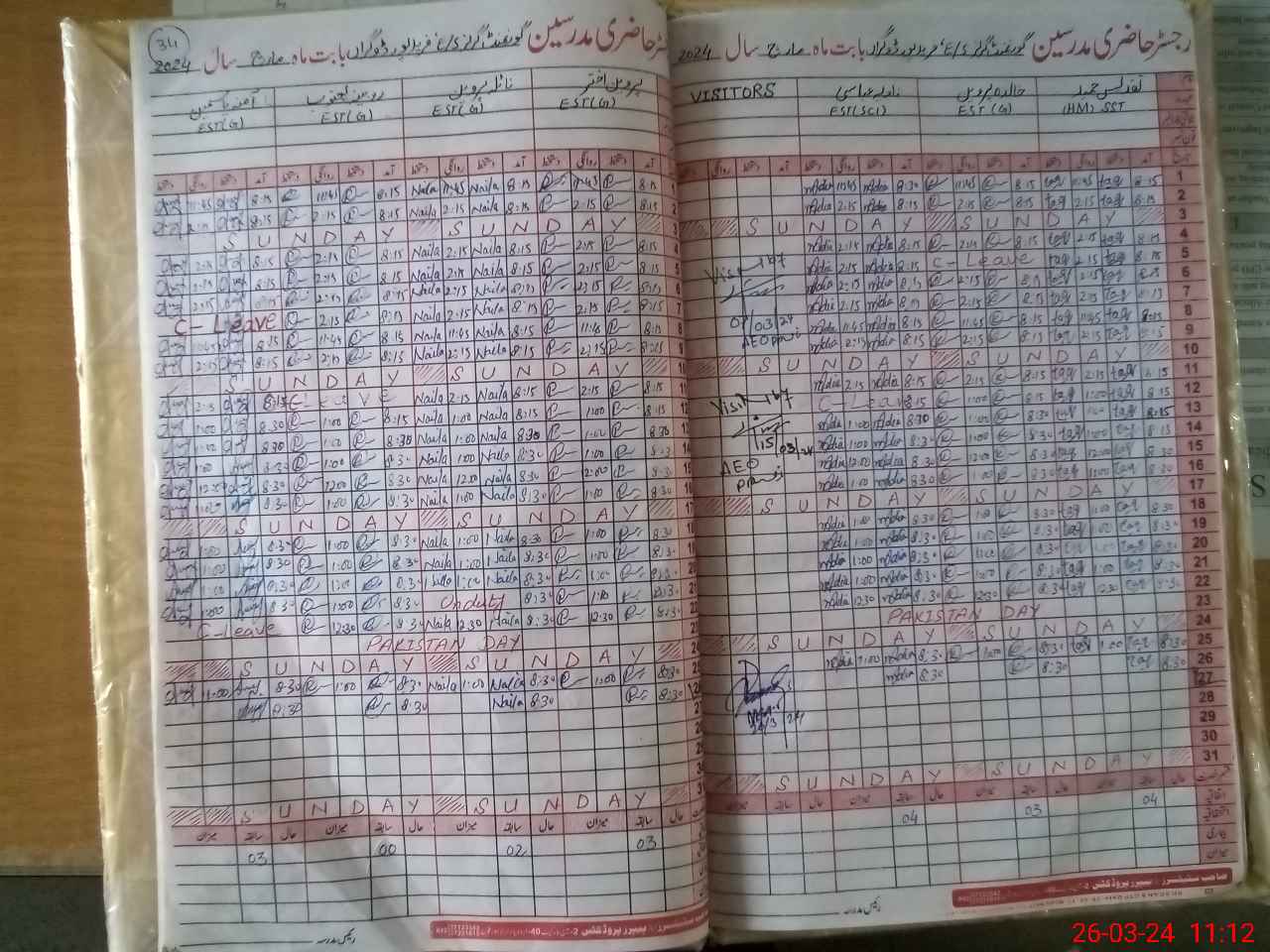 | Leave | Duty | Absent | Maternity | Medical | Ex- Pak |