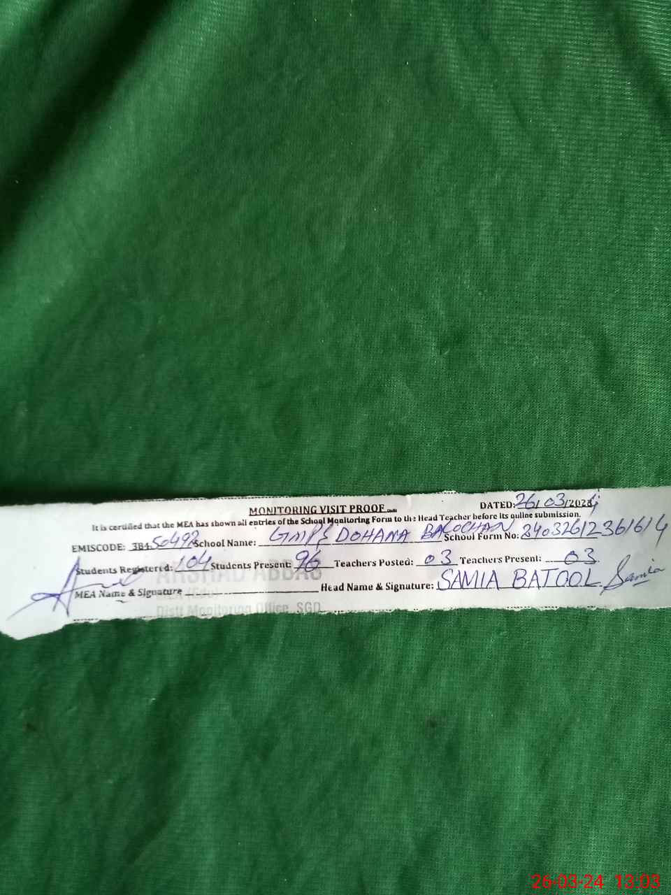 | EMIS Code: 38450492 | Name of School: GMPS DOHANA BALOCHAN | |||