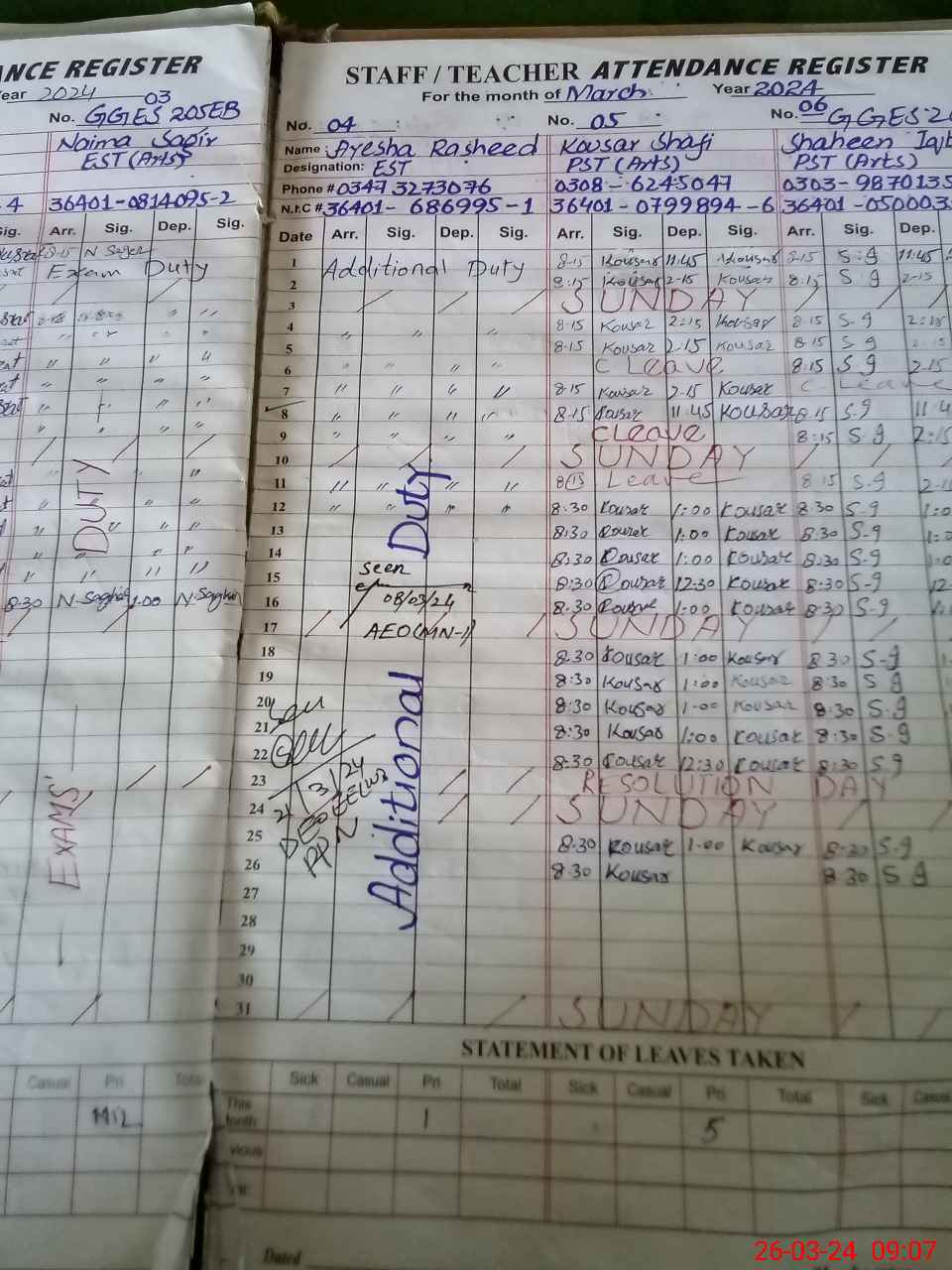 | 31**** | As**** Ra**** | 2 | 2 | 0 | 0 | 0 | 0 | 0 | 0 | 0 | 2 | Exam Duty | |