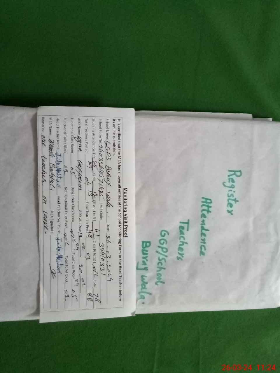 | EMIS Code: 32410331 | Name of School: GGPS BURAY WALA | |||