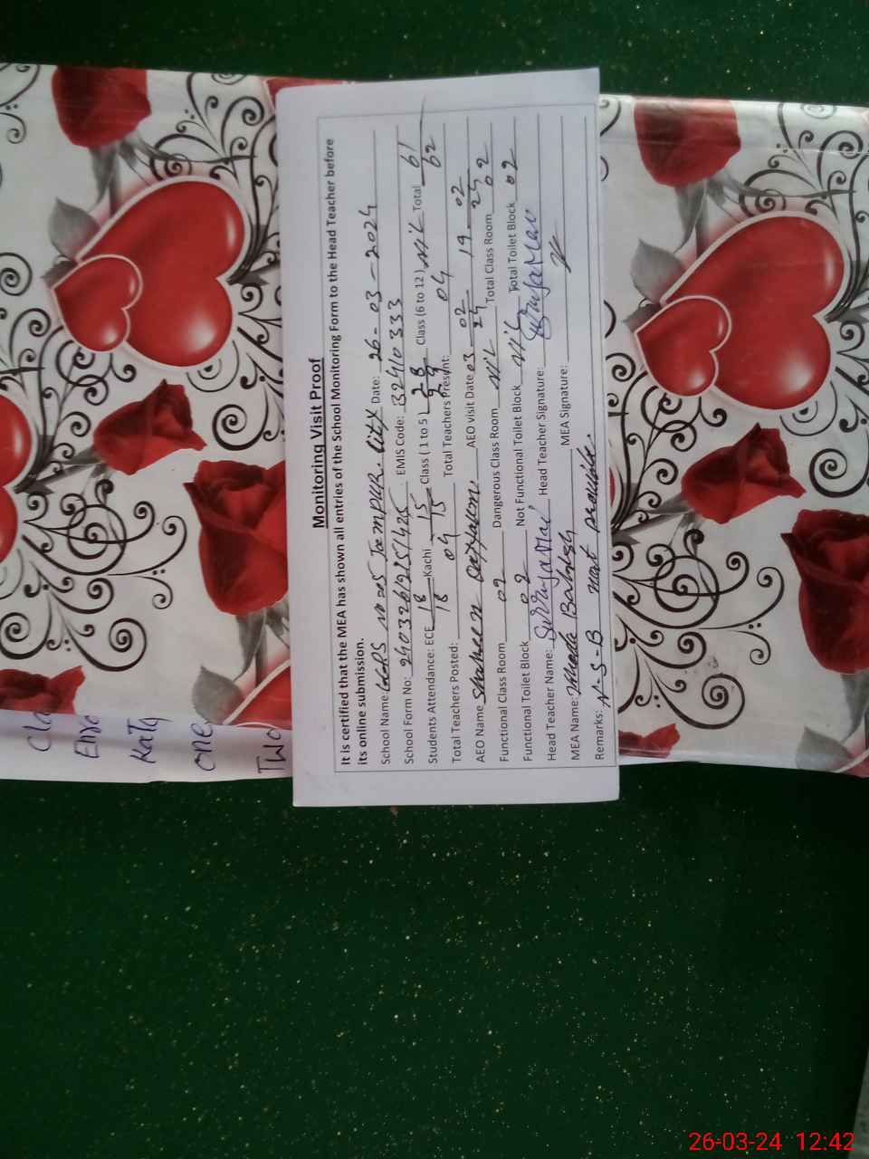 | Certified that this School was Inspected by the Undersigned MEA/DMO Today and the Information Stated Above is as Per Record. | |||||