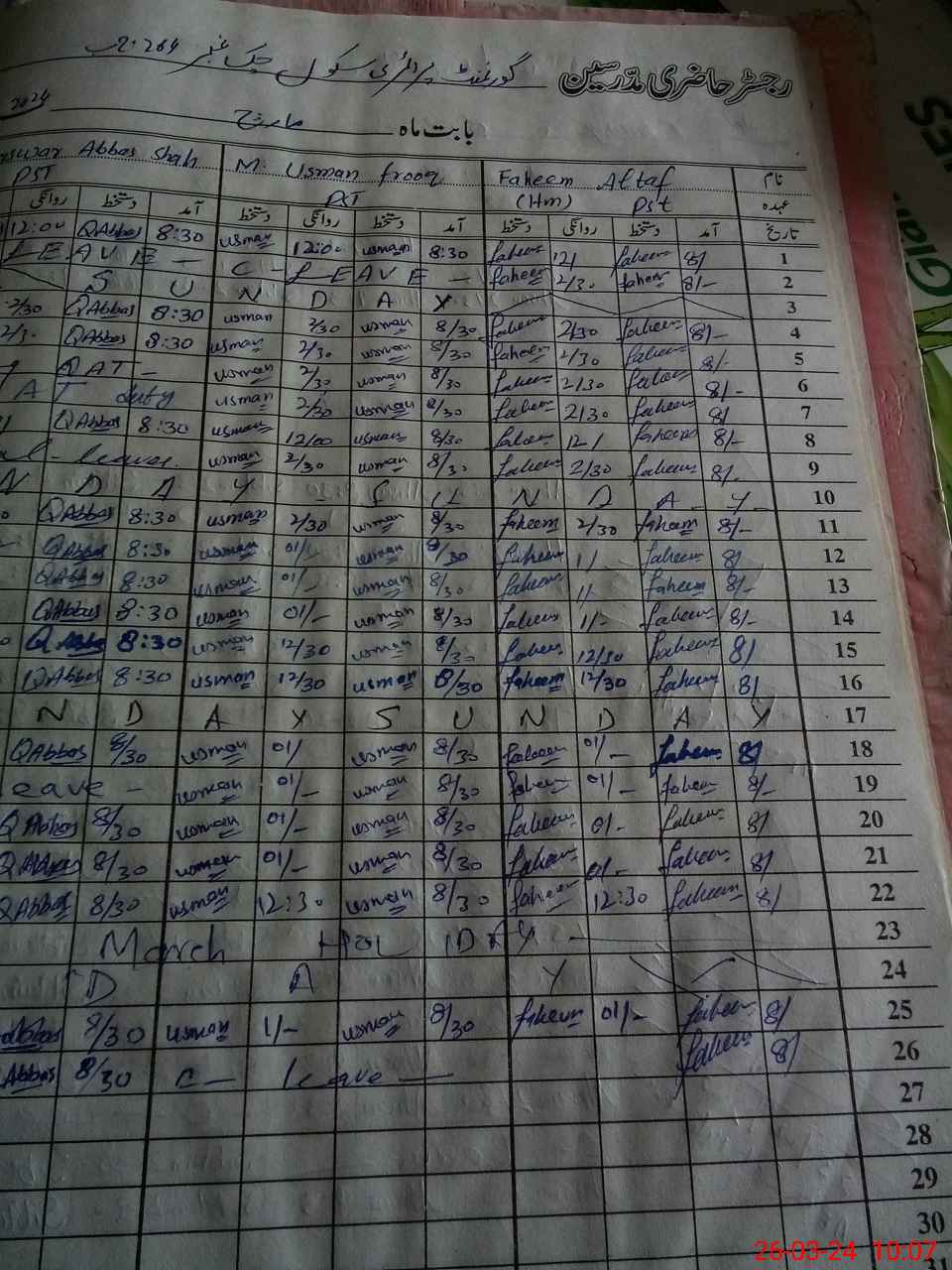 | Name: Mu**** Sh**** Designation: (School Headmaster's/Headmistress's) PST Phone/Cell Number: 03**** |