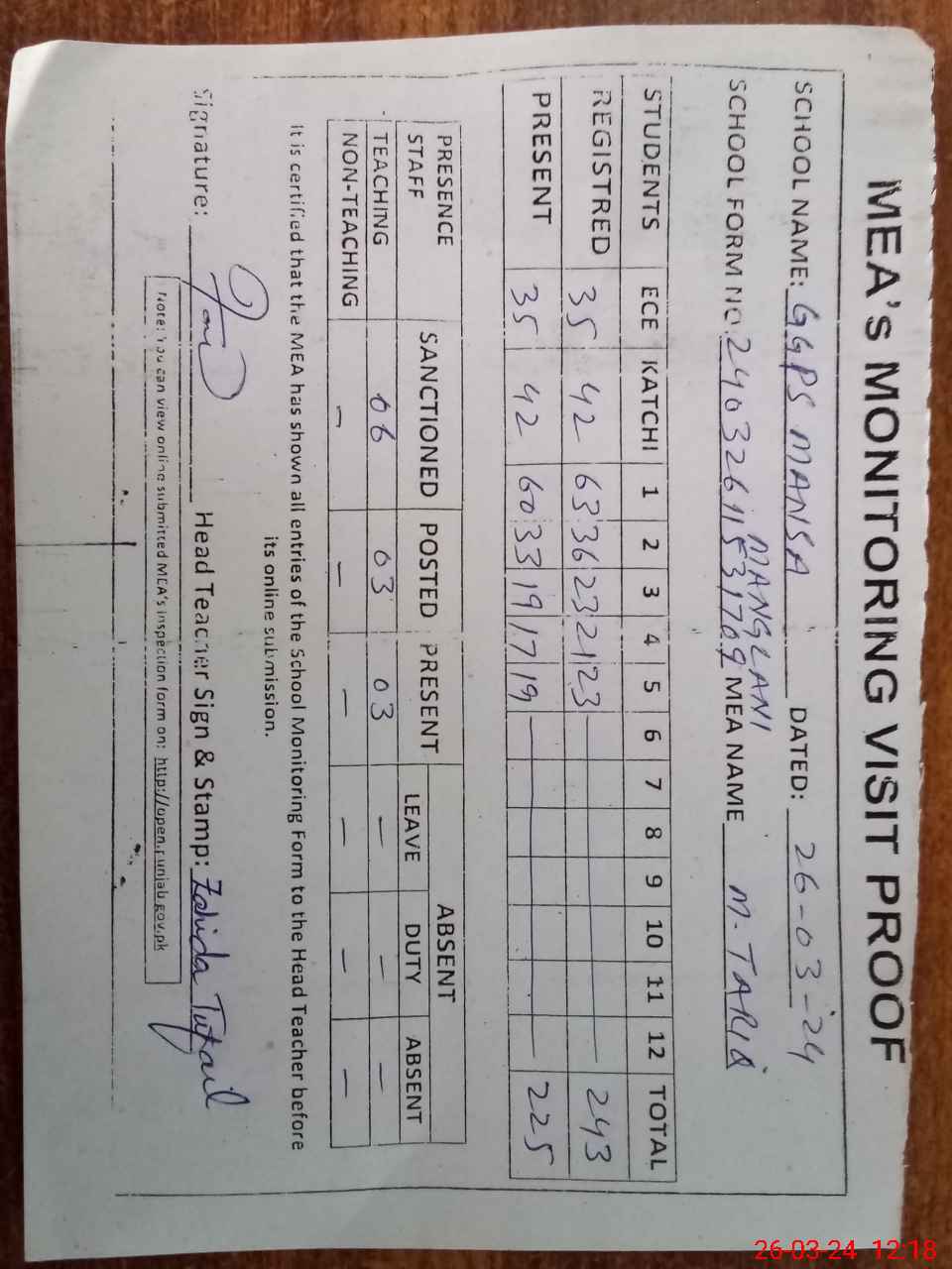 | EMIS Code: 36410458 | Name of School: GGPS MANSA MAGLANI, ABDUL HAKIM | |||