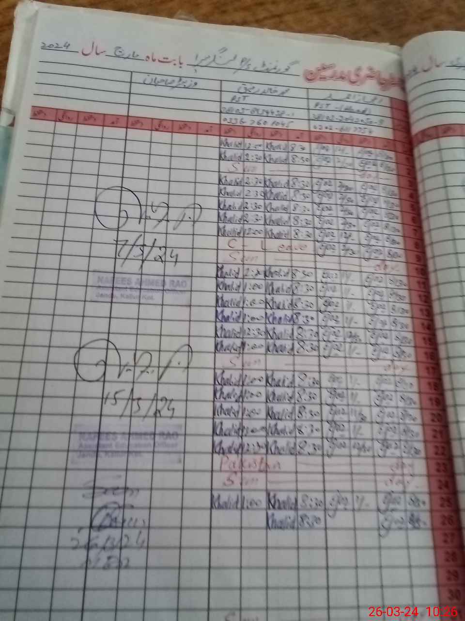 | Monitoring Date: 26-03-2024 | Start Time: 26-03-2024 09:42 AM | End Time: 26-03-2024 10:29 AM | Name of MEA: Gh**** Qa**** Kh**** | |