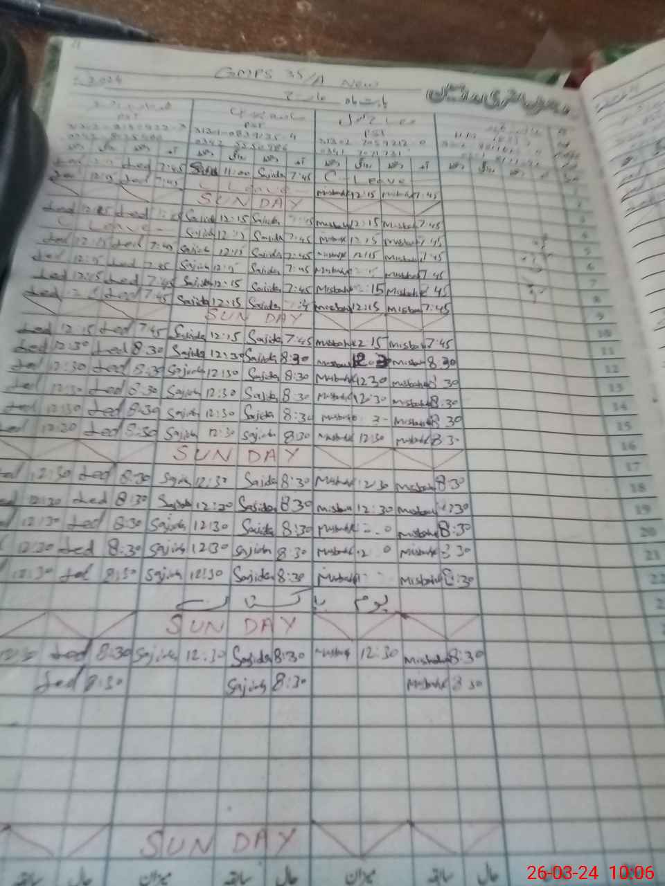 | Leave | Duty | Absent | Maternity | Medical | Ex- Pak |