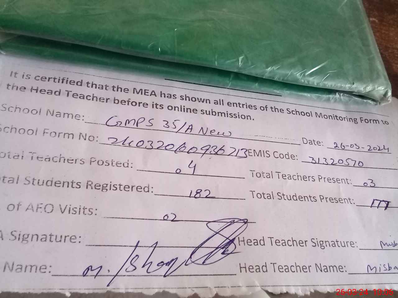 | EMIS Code: 31320570 | Name of School: GMPS CHAK 35/A NEW | |||