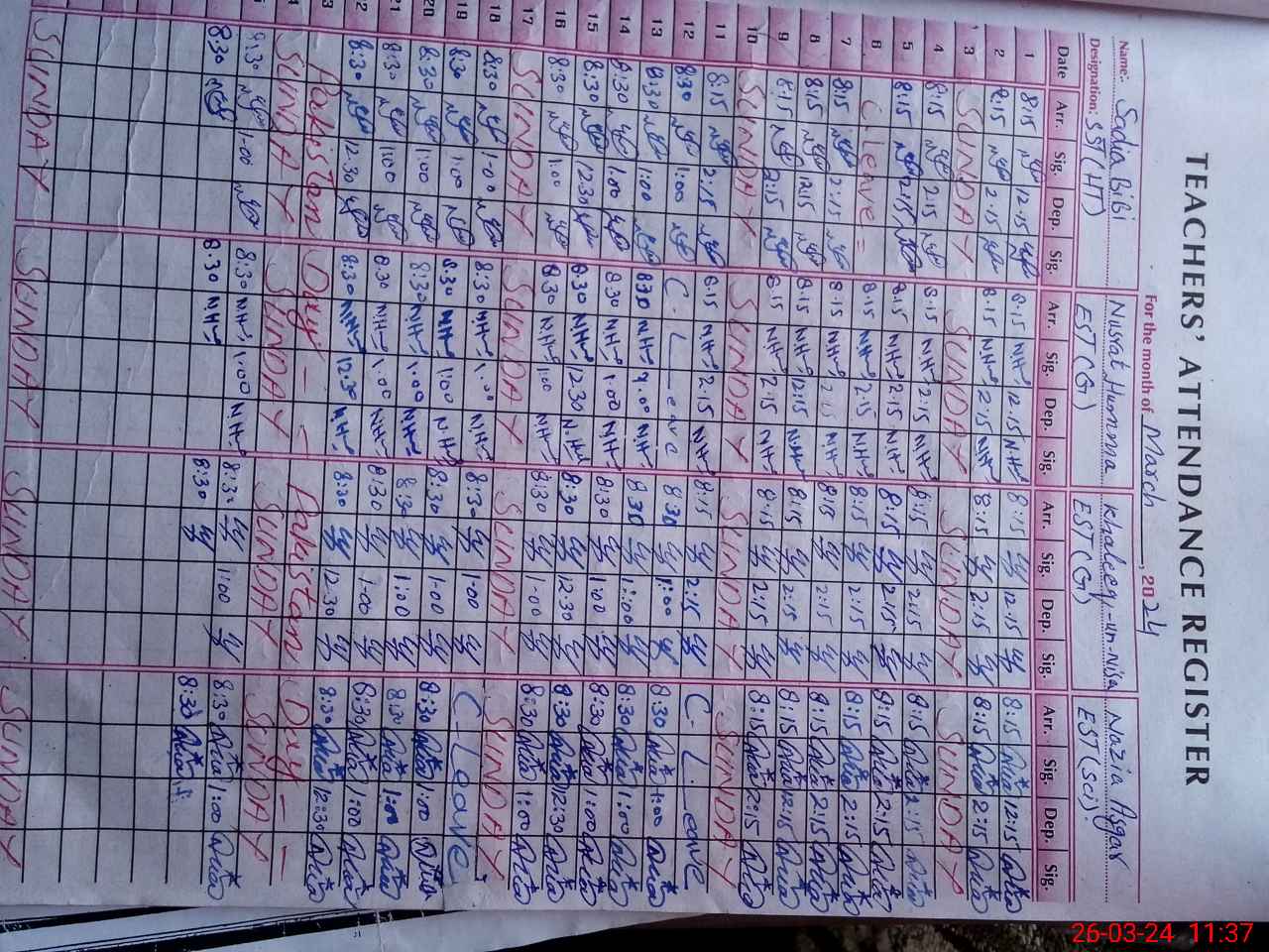 | Name: SA**** BI**** Designation: (School Headmaster's/Headmistress's) SST ARTS Phone/Cell Number: 03**** |