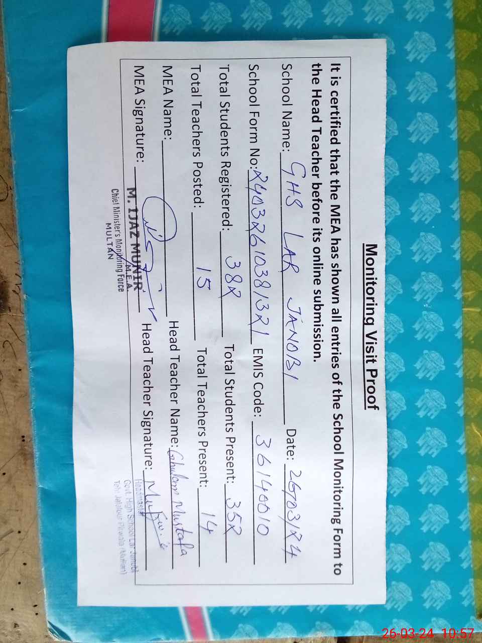 | EMIS Code: 36140010 | Name of School: GHS BASTI LAR JANUBI | |||