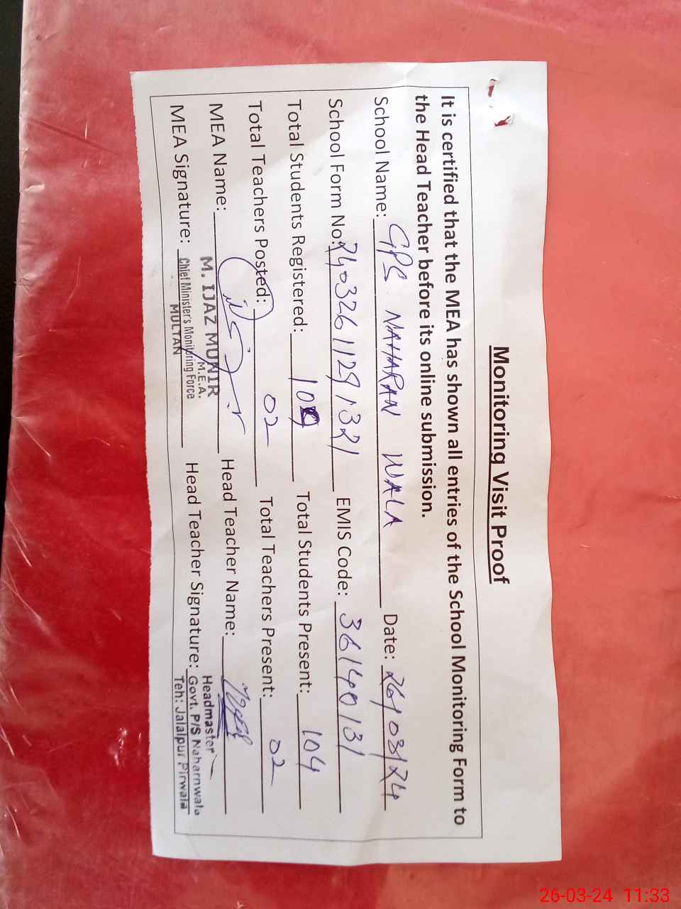 | EMIS Code: 36140131 | Name of School: GPS NAHRAN WALA P/O BAIT KACH | |||