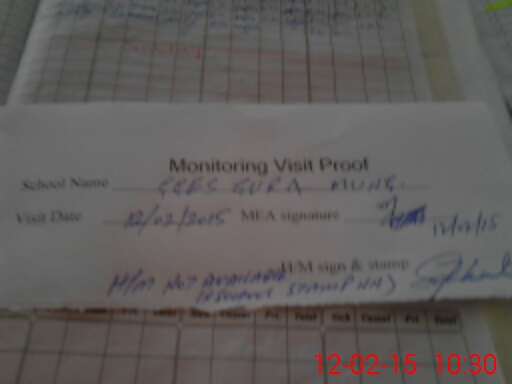 | Attendance Register | Head Teacher | MEA with School | Visit Proof |