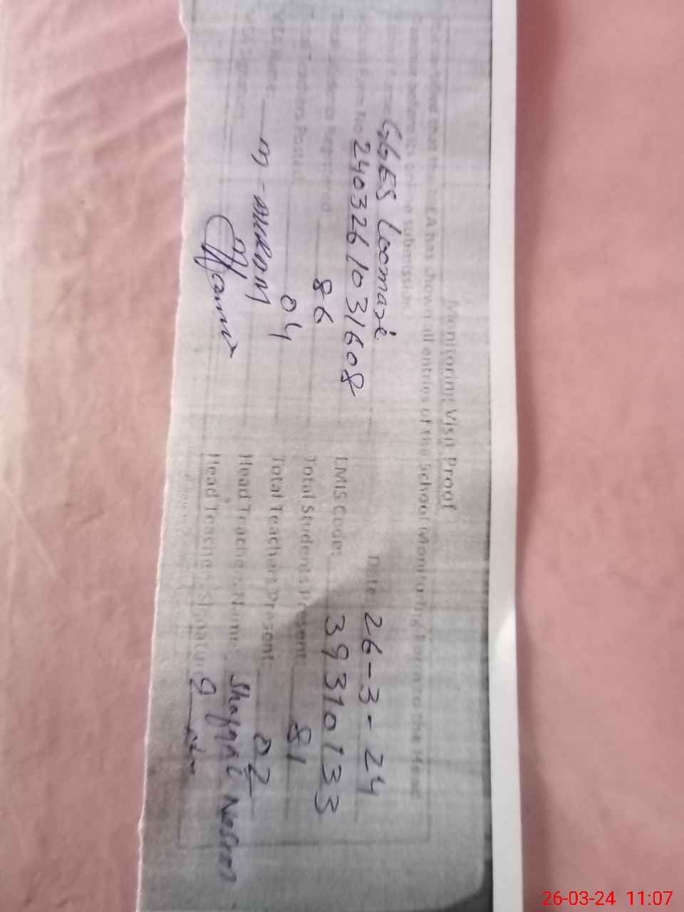 | Certified that this School was Inspected by the Undersigned MEA/DMO Today and the Information Stated Above is as Per Record. | |||||
