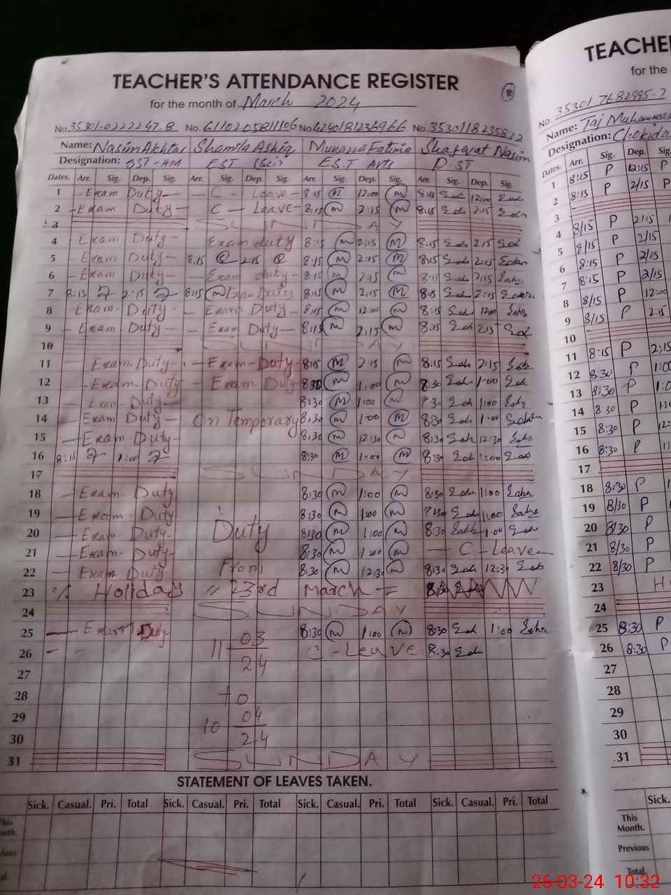 | 35**** | Na**** Ak**** | SST | Regular | 0 | 0 | 0 | 0 | 0 | 0 | 0 | 0 | 0 | Exam Duty |