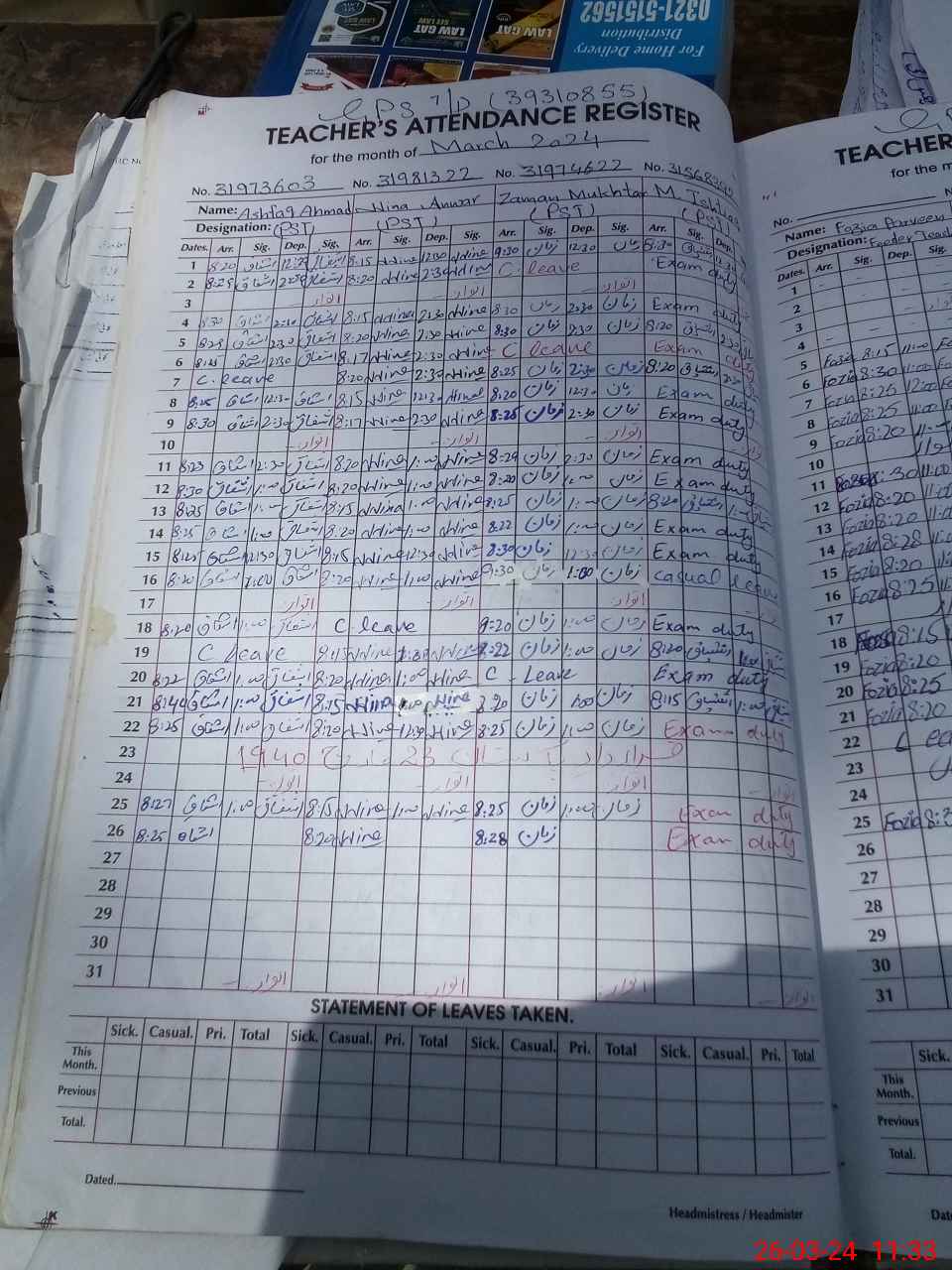 | Leave | Duty | Absent | Maternity | Medical | Ex- Pak |