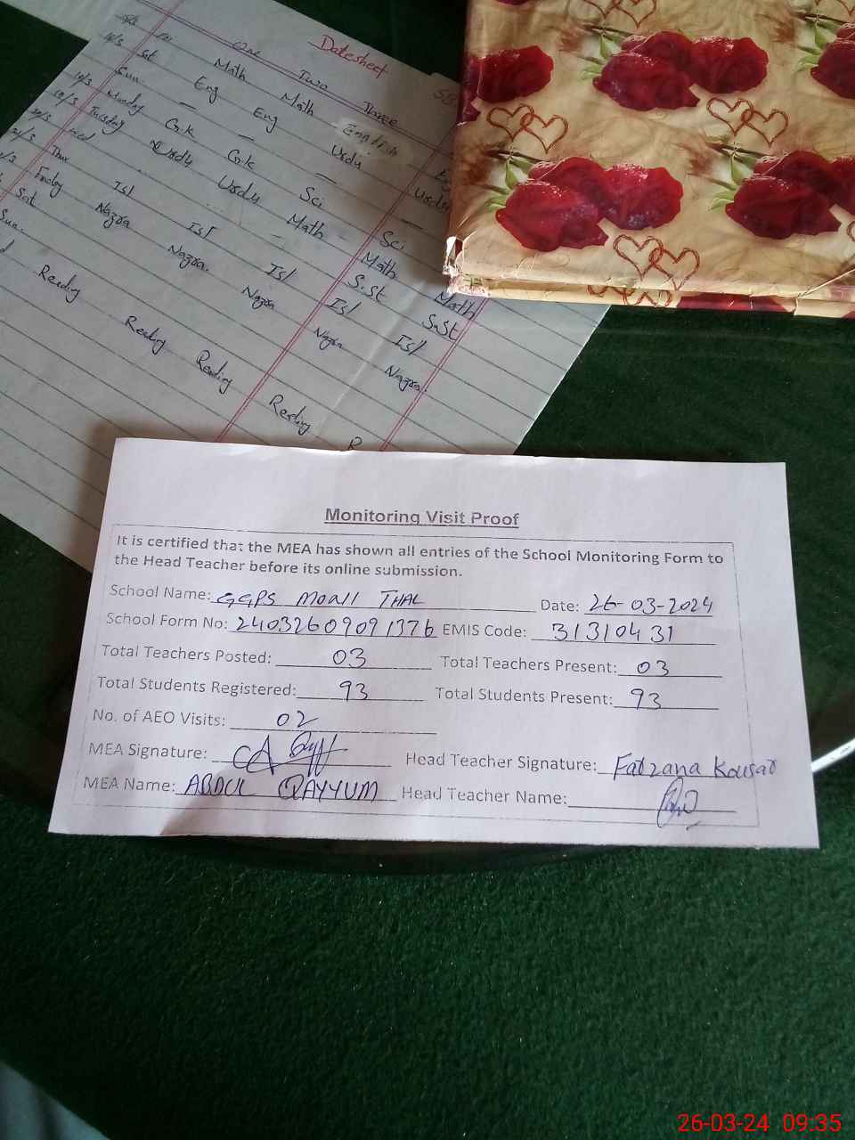 | EMIS Code: 31310431 | Name of School: GGPS MONI THAL | |||