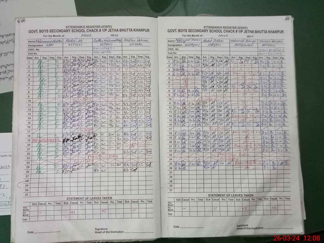 | CNIC | Full Name | Designation | R/C | Absence During Last Calender Month |