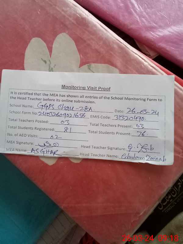 | EMIS Code: 31320490 | Name of School: GGPS CHAK NO.28/A | |||
