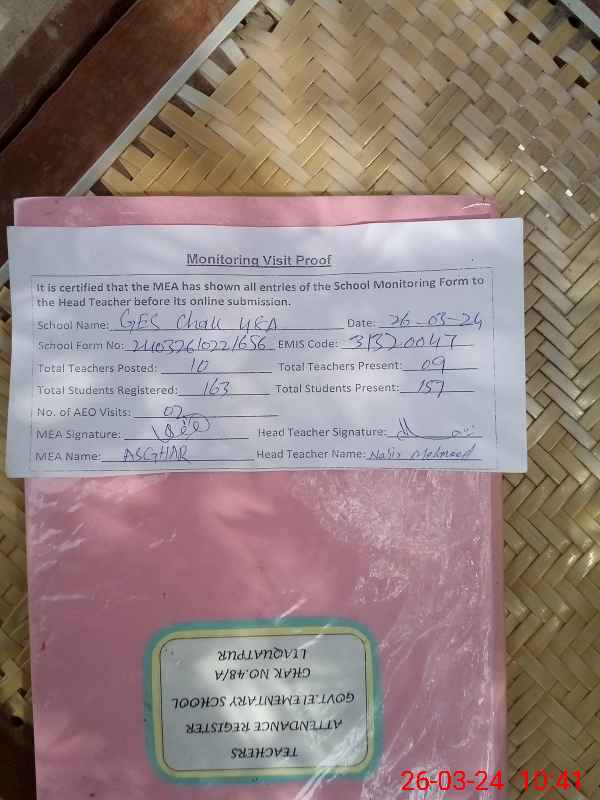 | EMIS Code: 31320047 | Name of School: GES CHAK NO. 48/A | |||