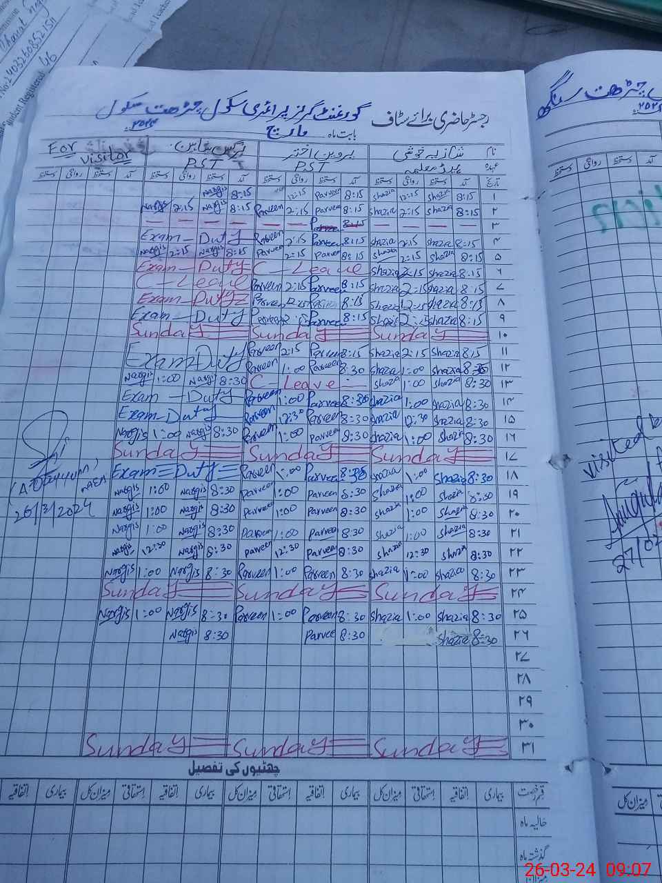 | Name: SH**** KH**** Designation: (School Headmaster's/Headmistress's) PST Phone/Cell Number: 03**** |