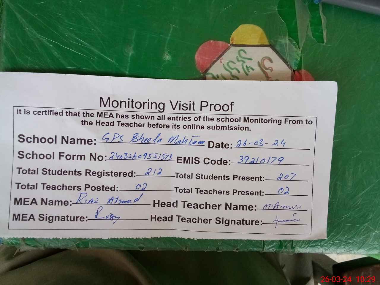 | EMIS Code: 39210179 | Name of School: GPS BHEELA MAHTAM | |||