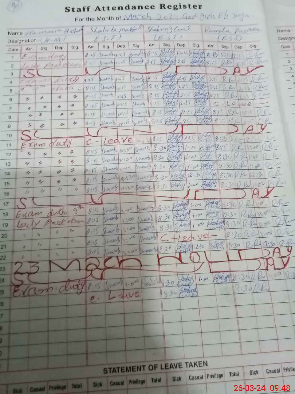 | 36**** | Am**** No**** | 3 | 1 | 0 | 0 | 0 | 0 | 0 | 0 | 0 | 0 | 0 | Exam Duty |