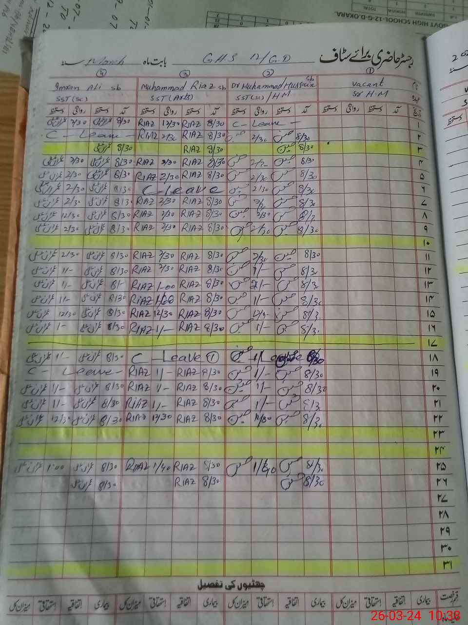 | CNIC | Full Name | Designation | R/C | Absence During Last Calender Month |