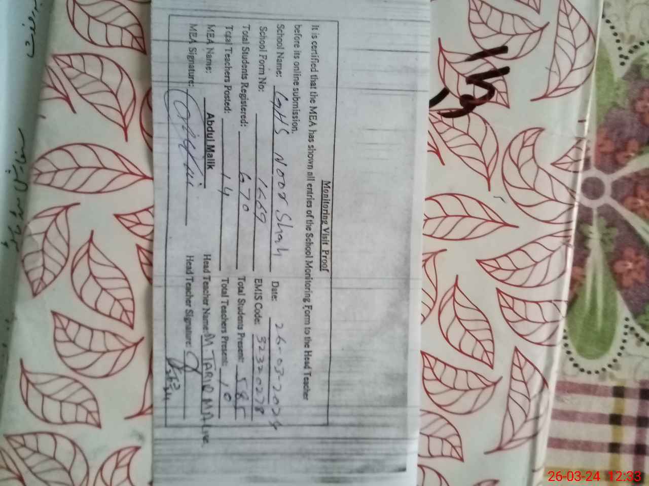 | EMIS Code: 32320278 | Name of School: GHS NOOR SHAH | |||