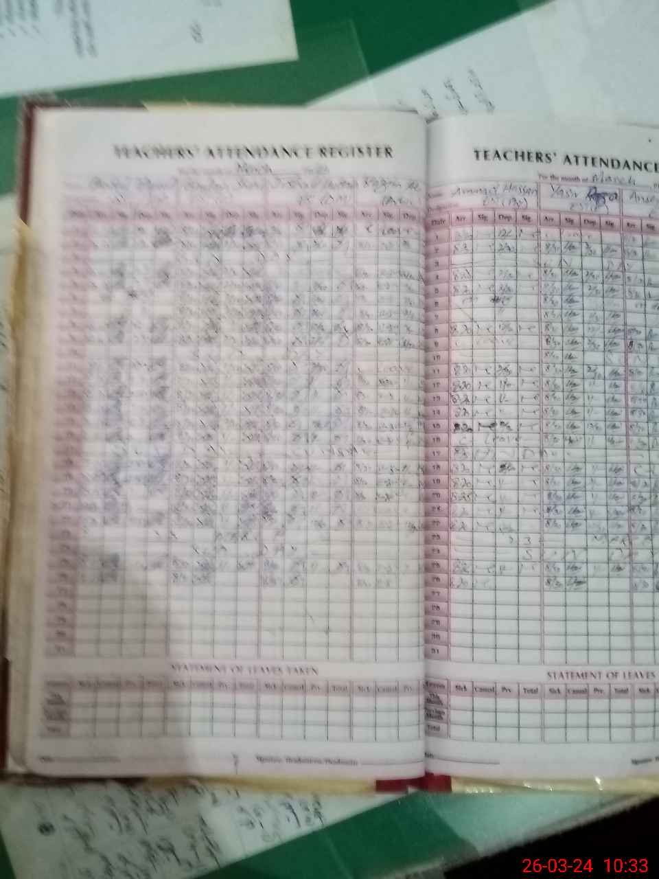 | Leave | Duty | Absent | Maternity | Medical | Ex- Pak |