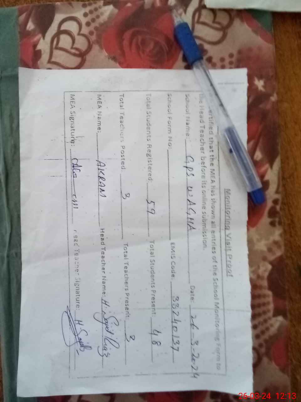 | EMIS Code: 33240137 | Name of School: GPS WAGHA | |||