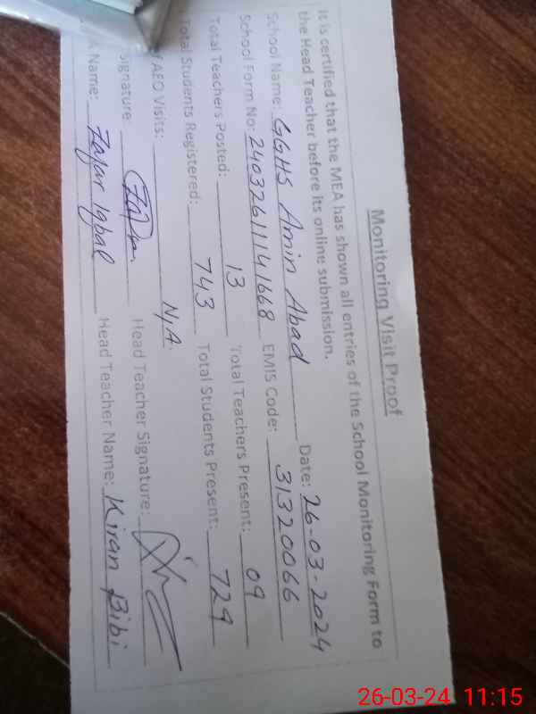 | EMIS Code: 31320066 | Name of School: GGHS AMIN ABAD | |||