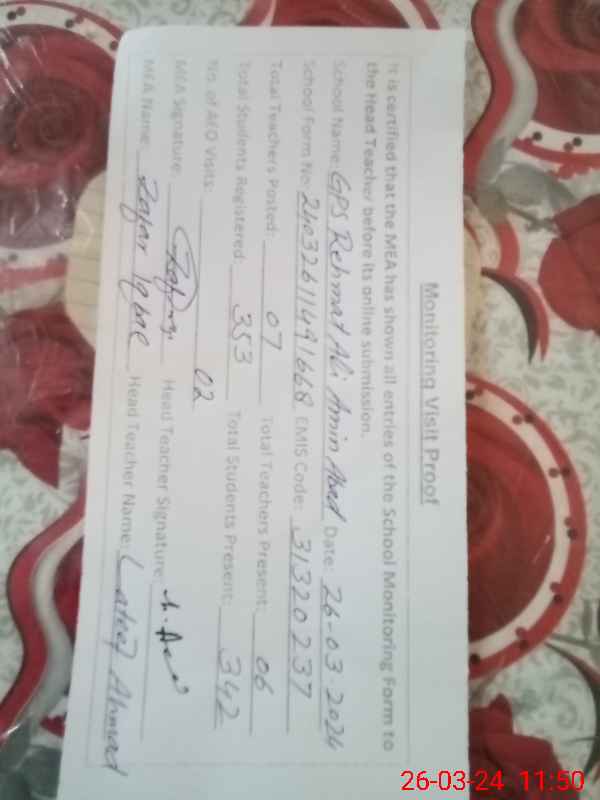 | EMIS Code: 31320237 | Name of School: GPS REHMAT ALI AMIN ABAD | |||