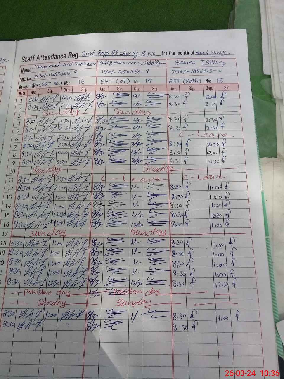 | Name: Mu**** Ar**** Sh**** Designation: (School Headmaster's/Headmistress's) S.S.T Science Phone/Cell Number: 03**** |